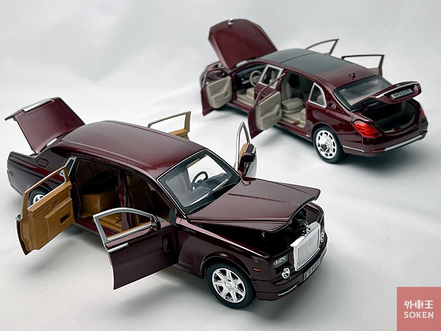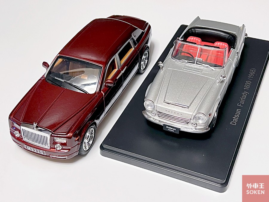 こちらは同じ「XLG」ブランドによるロールス・ロイス ファントム「風」モデル。パッケージを見ると、フライングレディーが小さな光に修正されていることがわかります。こちらも側面の窓ガラスはなく玩具然とした出来映え。筆者が購入した製品の価格は二千円台で、前述のプルマンも同価格帯でした。