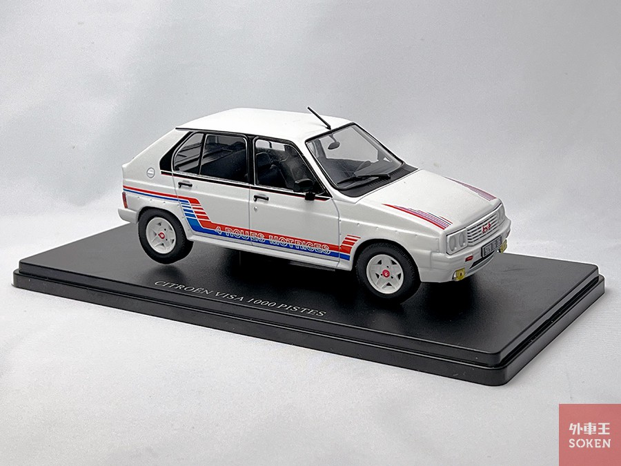 写真はアシェットが発売していた「Collection Citroën」のシトロエン VISA 1000 PISTES。この車種自体はグループBのレアなモデルですが、BX、XMなどの人気車種からSMの大統領専用車まで、さまざまな車種が製品化されました。