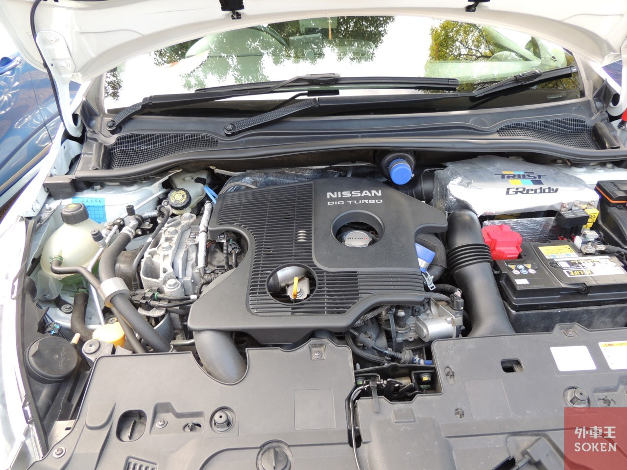 RSモデルであることからNISMO仕様にしたこだわりの日産仕様だそうで、ホイールはインフィニティのスカイラインのホイール。フロントのNISSANのエンブレムはベース部分をアルミでワンオフ製作したこだわりようです。そのほか随所に細かい日産仕様が施され絵描きも?がいっぱいになっていました。