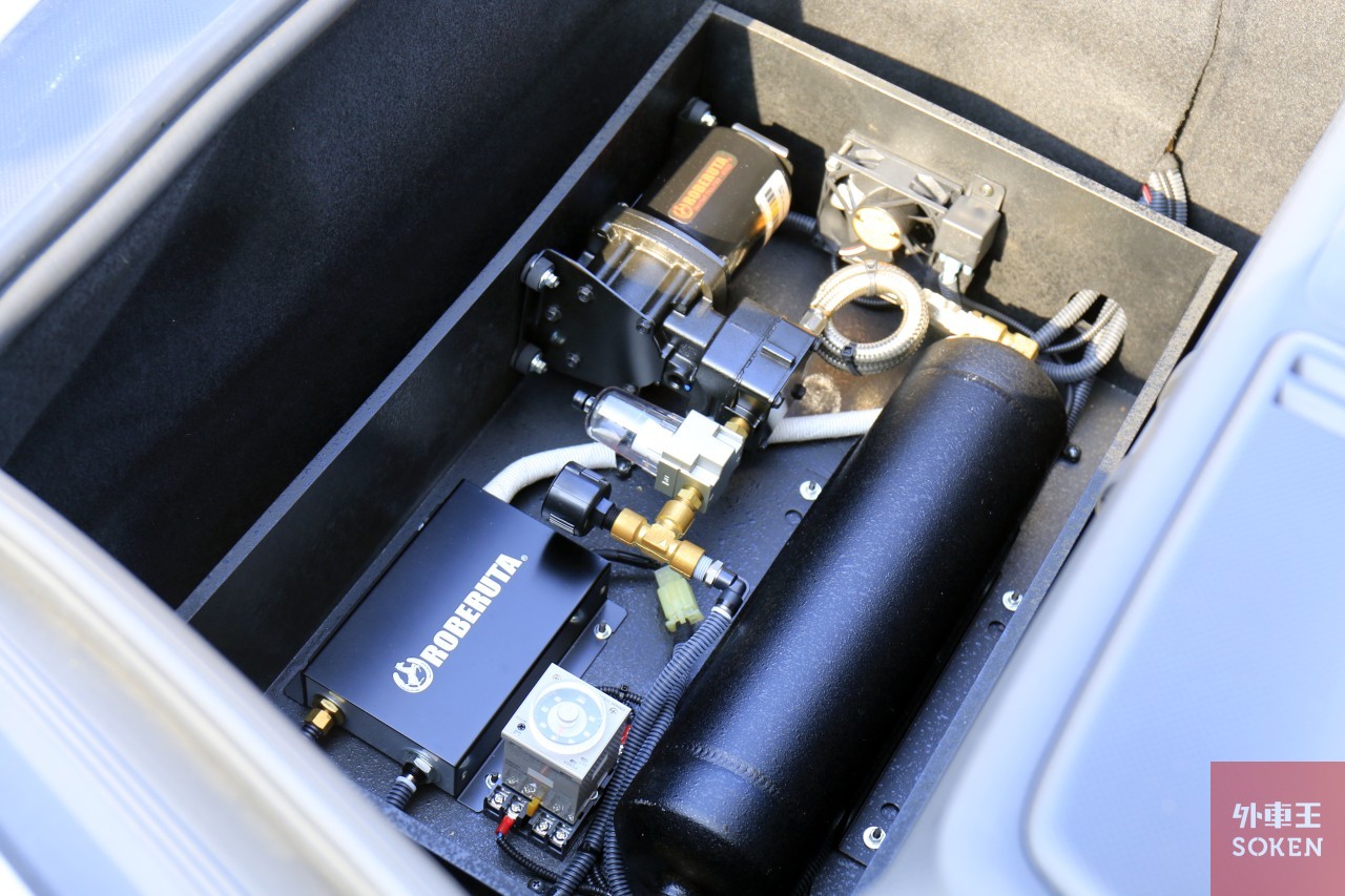 ▲ロベルタ製のリフティングシステムが装着されているため、フロントの車高が約4cm上がる仕様になっています