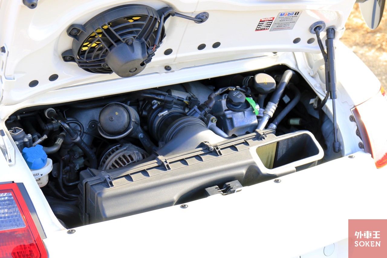 ▲排気量3600cc「M96-76製」水冷水平対向エンジン6気筒DOHCの最高出力は360ps/7200rpm、最大トルクは37.7kg-m/5000rpmを発生