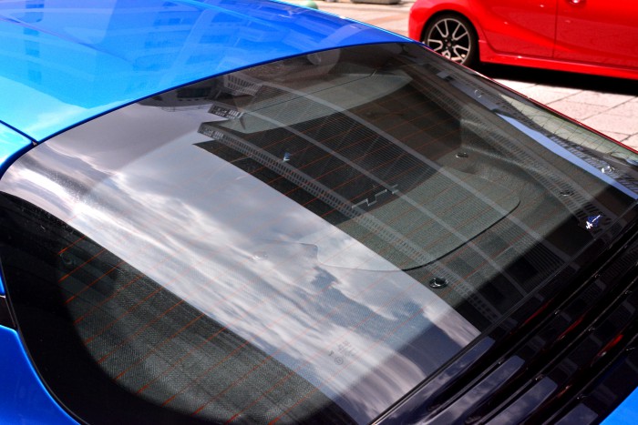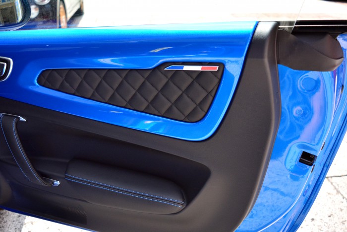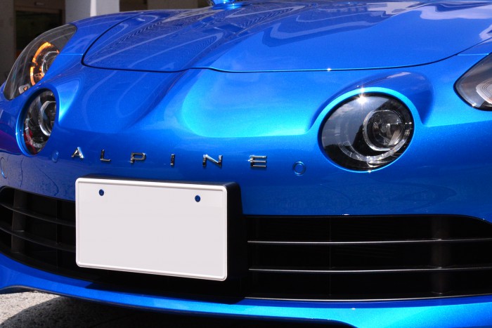 ▲ナンバーボルトも、ボディと同色のブルーでコーディネート。お見せできないのが残念ですが、希望ナンバーもとある名山の標高をチョイスしたあたり、さすがアルピニストの安永さん!ちなみにアルピーヌはフランス語で高山の意ですから、運命的ですね…!