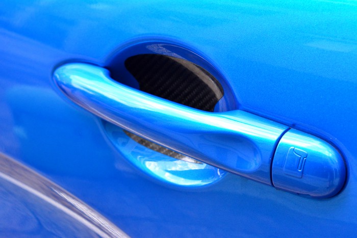 ▲ドアハンドルの傷防止ステッカーはカーボン調]