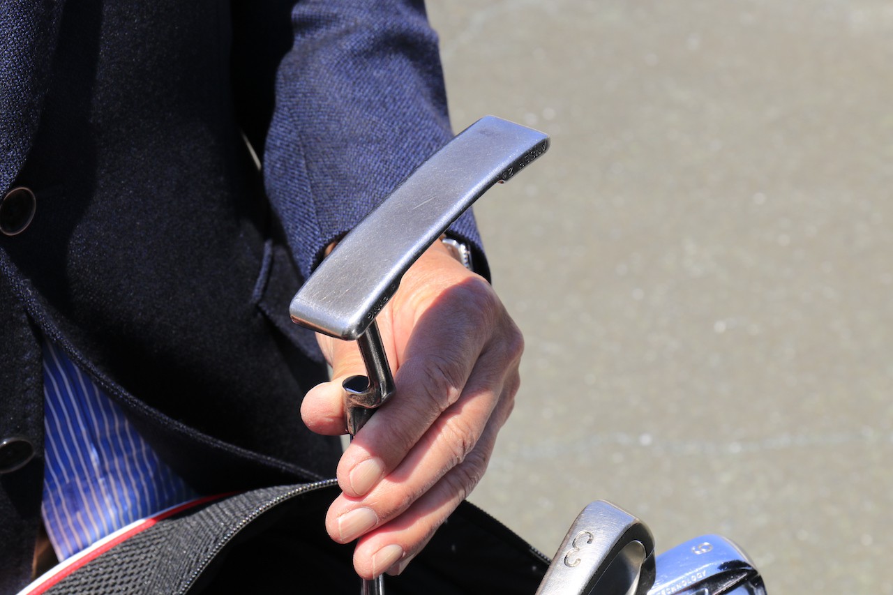 ▲実はレフティの村上さん。長年愛用しているというゴルフクラブも左利き用