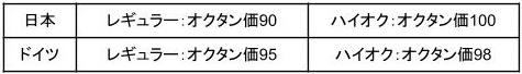 使用する燃料は、「オクタン価」という数値で決められています。オクタン価とは、ガソリンの性質を数値化したもので、数値が大きいほどに性質が良いガソリンと言えます。それぞれの国に応じて、オクタン価が異なります。
