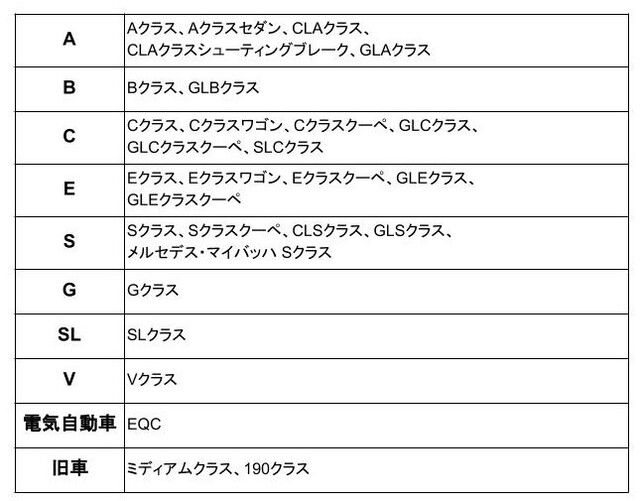 メルセデス・ベンツのラインナップを表にまとめましたので参考にしてください。メルセデス・ベンツは、クラスをアルファベットで区別することで比較的簡単に理解することができます。