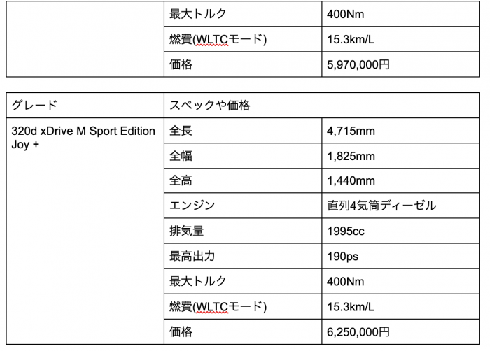 また、各モデル名の最後尾に示される「i」「d」「e」は、エンジンの種類です。「i」はガソリンエンジン、「d」はディーゼルエンジン、「e」はハイブリッドやプラグインハイブリッドを示します。