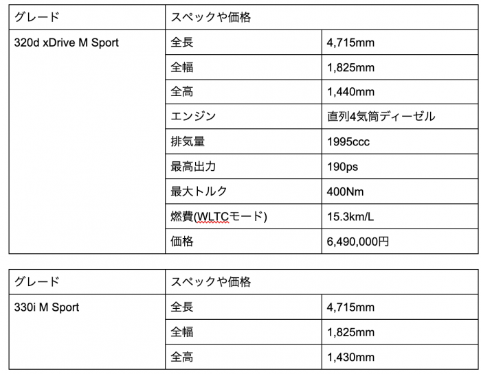 最新のBMW「3シリーズ」セダンには、ガソリンエンジン、ディーゼルエンジン、プラグインハイブリッドのパワートレインを用意しており、全12種類のグレードをラインナップしています。また、衝突安全性が高いボディを採用し、ハンズ・オフ機能付き渋滞運転支援機能など、先進的な運転支援システムが搭載されているのも特徴です。グレード一覧の詳細は次の通りとなっています。