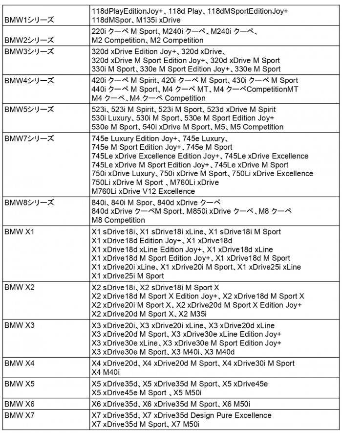 bmwエコカー減税対象モデル一覧