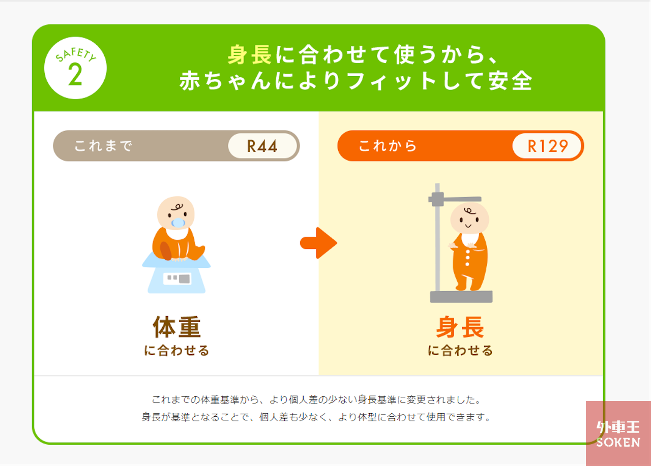 ※出典 コンビ「知ってる?新安全基準R129」より(https://www.combi.co.jp/products/carseat/r129/)