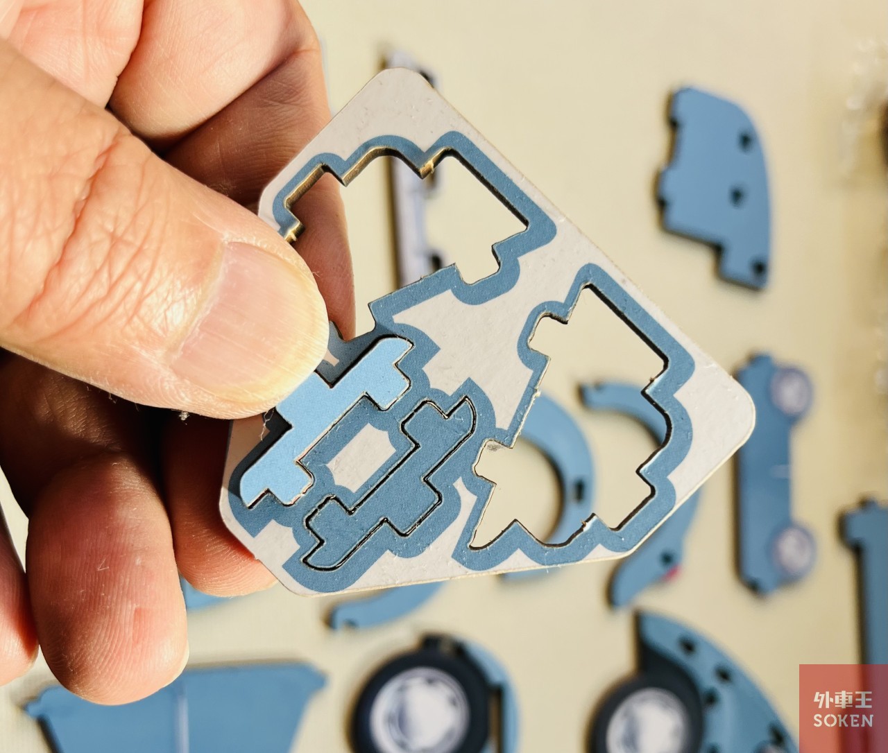 そのうち4つのパーツは、プラスティックモデルのように・・・というか、縁日の「型抜き」みたいな感じでポキポキと切り離して使うようです。いやあ、この辺が「DIY(Do it Yourself)」なのかな。チョロいもんだ、と思っていたのはココまでだぞオレ。