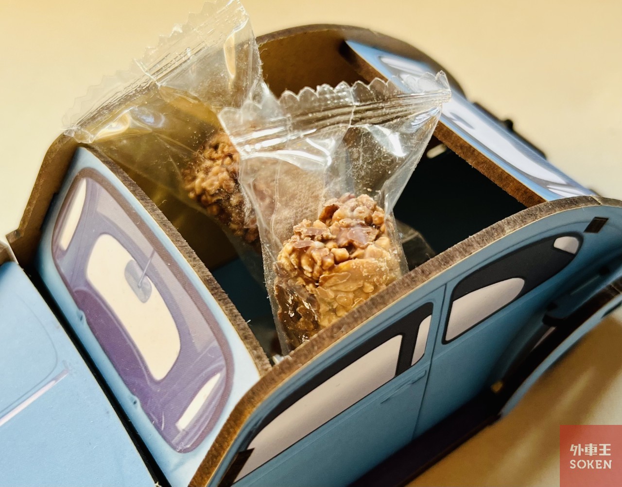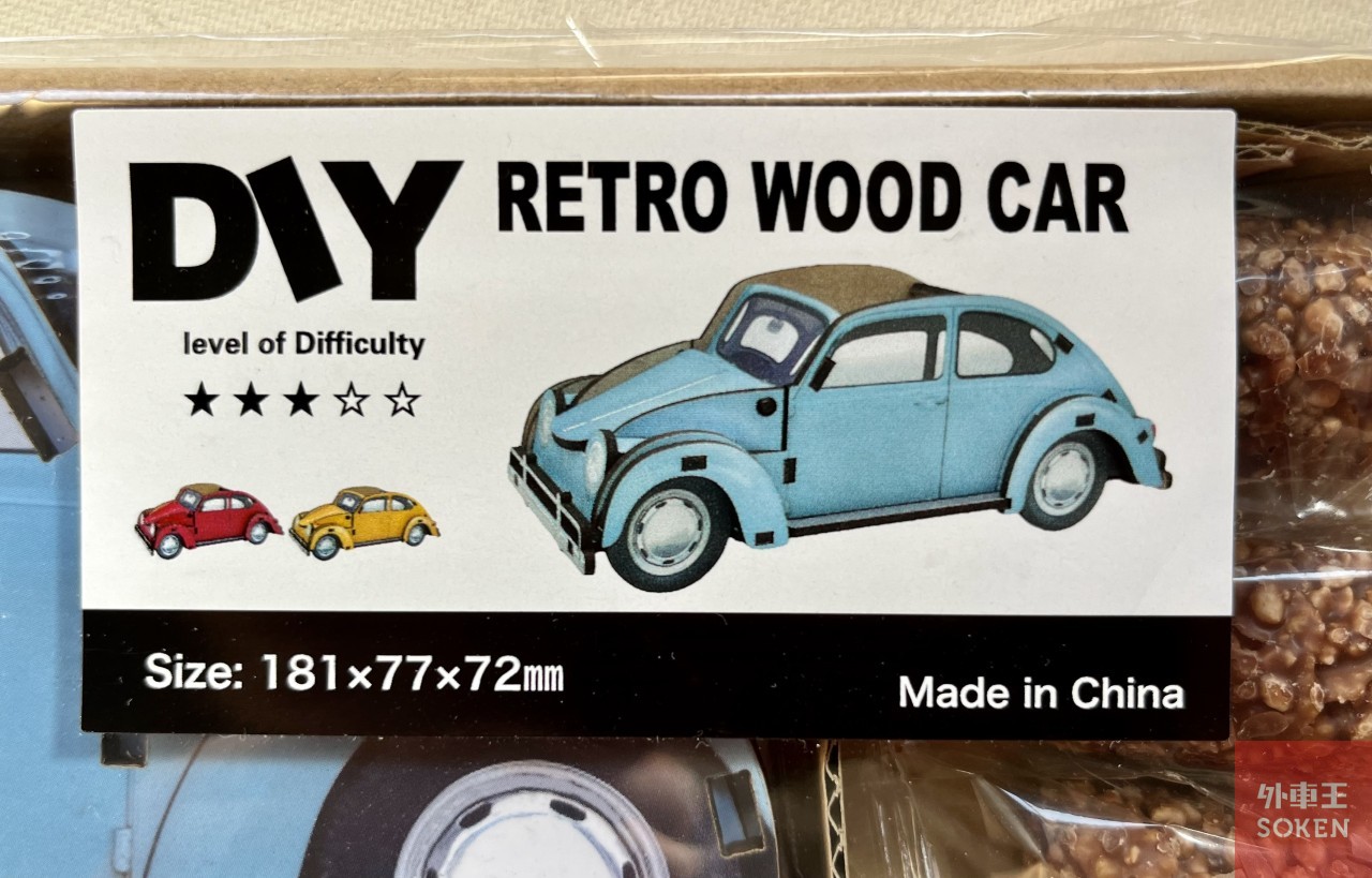 で、そのチョコレートのパッケージに「DIY RETRO WOOD CAR」とか書いてあって、なにやらビートルっぽいというか2CVぽいっというか、そんな絵が描かれているではありませんか!