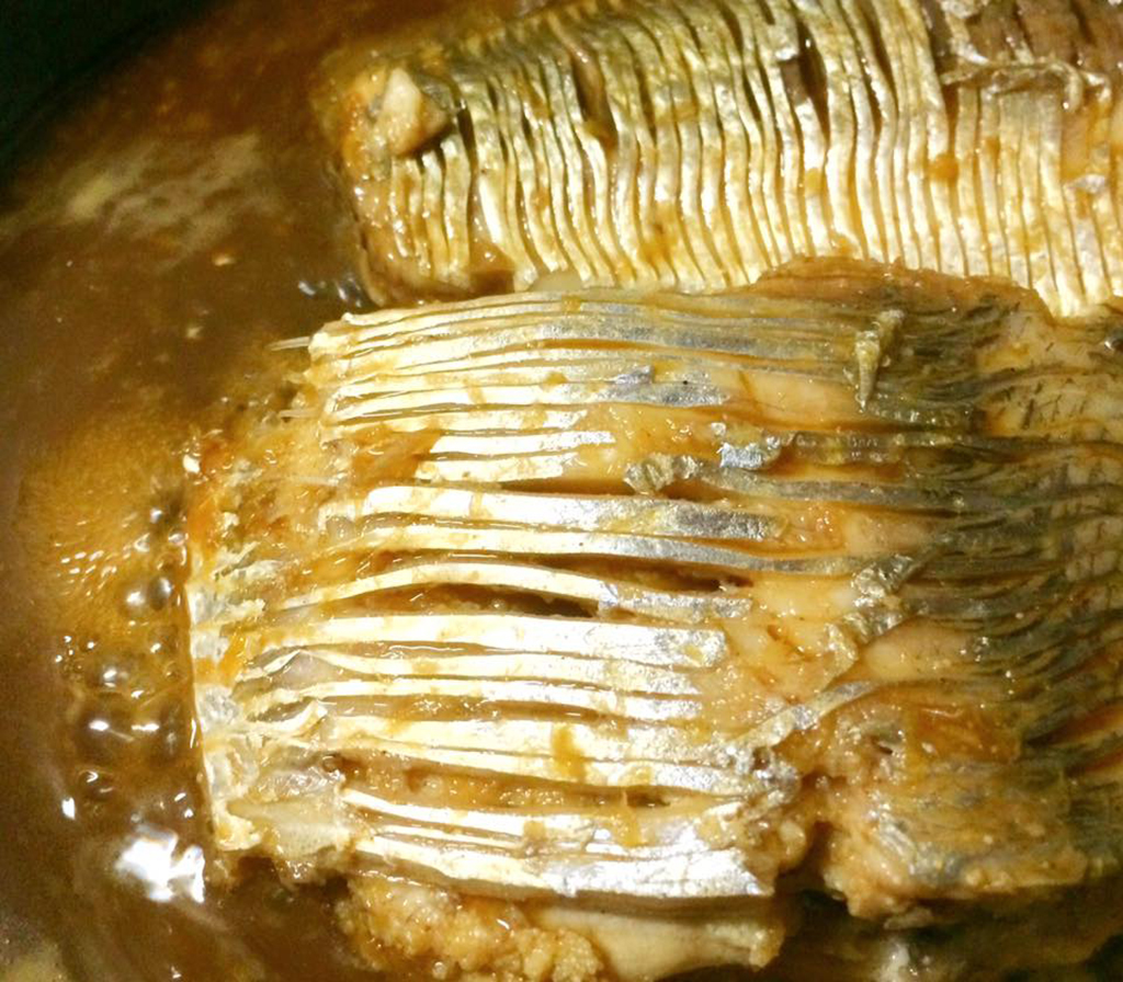 岡山県でよく食べられている魚「ヒラ」の煮付け。魚市場で切り身を入手