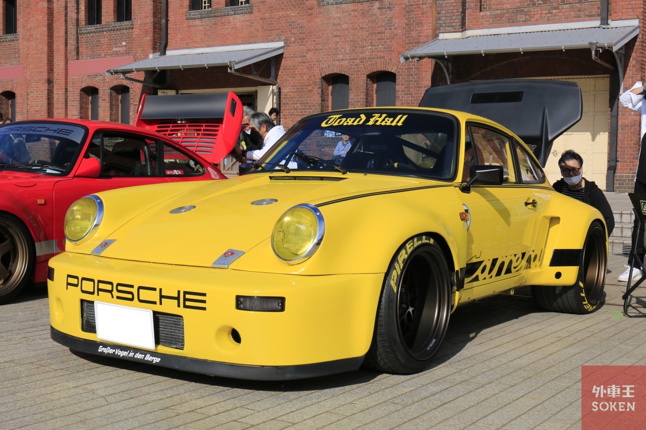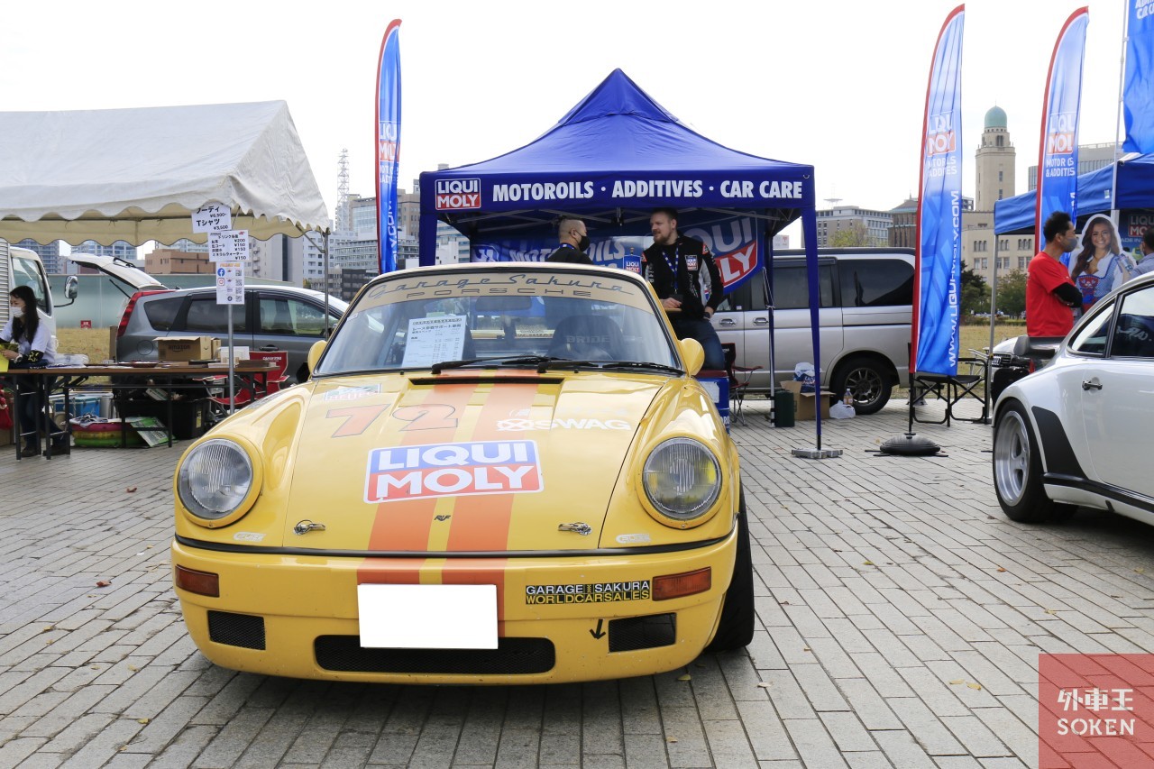 毎年、安定した参加台数があるタイプ930。ナローポルシェと同様に、オリジナル重視の個体から、もはや別のクルマ!?というくらいの改造が施された個性的なクルマまで、とても見応えのあるカテゴリーです。今回、取材班が注目したのは「ハンドメイドの6輪F1マシン、タイレルP34」の製作者であるCBR綿引氏が造り上げたRSR仕様の930。鮮やかなイエローのボディーカラーとワイドボディで注目を集めていました。