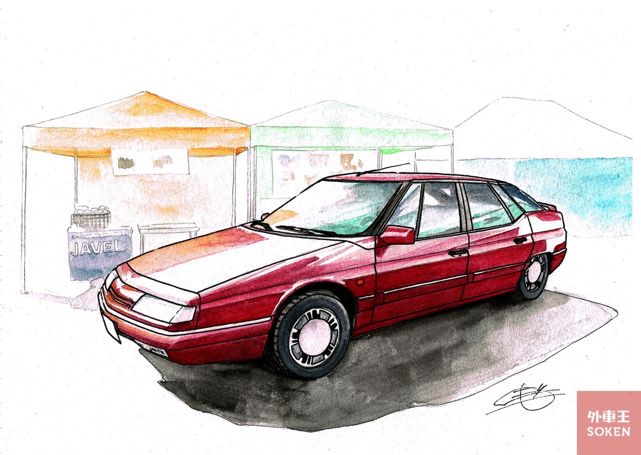 普段、個人をクローズアップして描くのですが、この日はなぜかシトロエンでお馴染みジャベルさんの前に展示してあったXMに惹かれました。