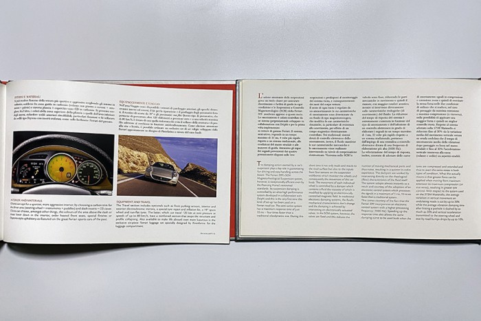 1988年に創業者のエンツォ・フェラーリが他界したことで、フェラーリにはさまざまな改革が訪れます。カタログについても、従来のビジュアル重視型から、きちんとした解説文が入るものへと変わっていきました。