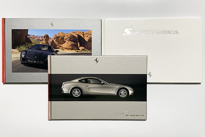 もちろん、V12エンジンを搭載するモデルについても、モデルチェンジを機にハードカバーカタログを採用。当初は横長の大判カタログだった612 スカリエッティは、のちにハードカバーカタログに切り替わりました。