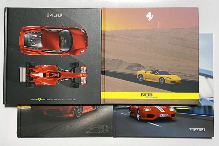 2003年のチャレンジストラダーレで初めてハードカバーカタログを製作したフェラーリは、360 モデナの後継となるF430からハードカバーカタログをリリース。続く430 スパイダーと430 スクーデリアもハードカバーとなったことで、V8ベルリネッタのカタログモデルはハードカバータイプに一新されました。