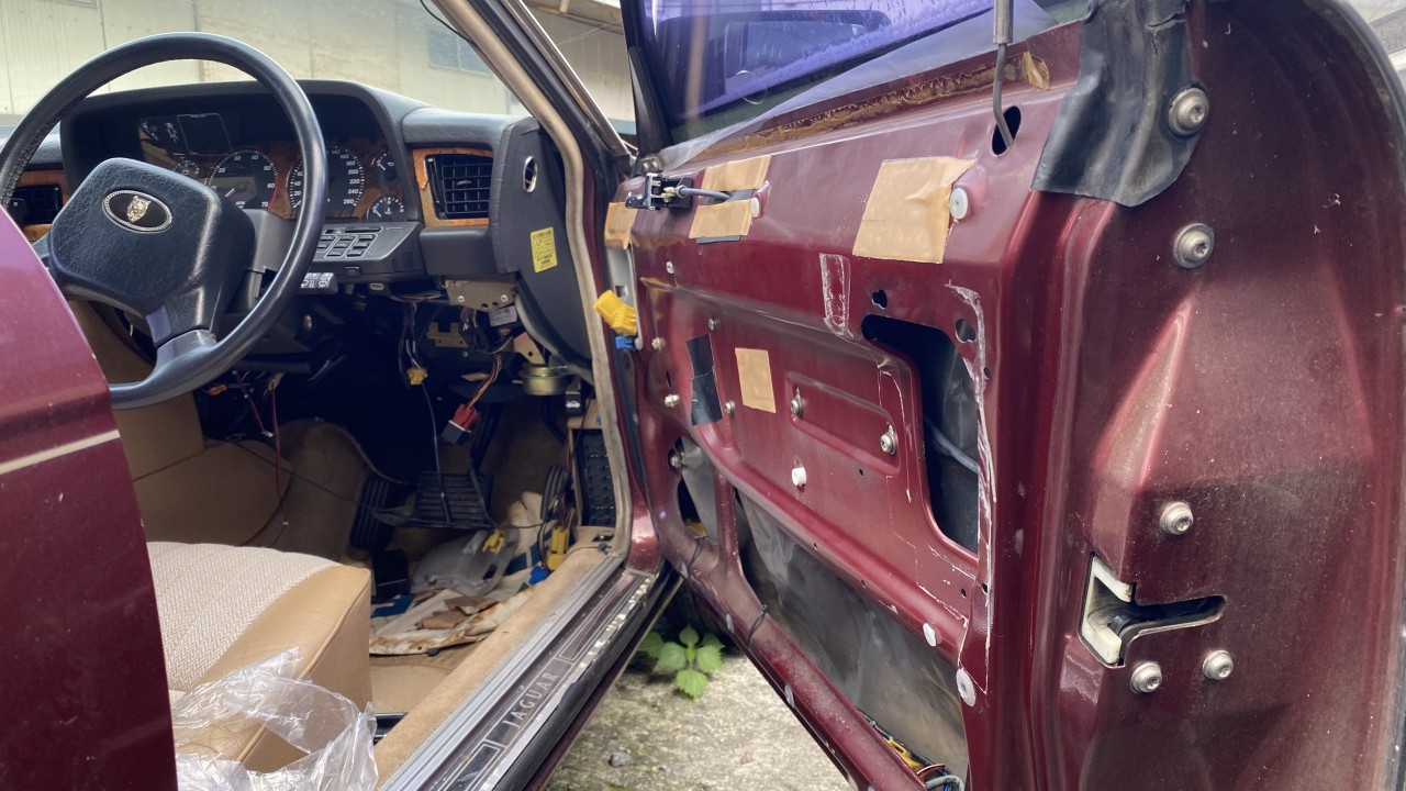 技術レベルとしては1980年代の工業製品であろうこの時代のイギリス車、おそらくはなかなかの強者なのでしょう。それでもドアノブに手をかければ、その丁寧なパーツの仕上げ精度、施錠も忘れられていたのかがちゃんと力を入れるとやや大袈裟に反応する操作感。そして重厚なドア。室内に上半身を潜り込ませるて触ると今でもフカフカしたシートの作り、シート生地の風合い。手は抜かずコストを惜しまない姿勢。その向こうに英国の誇りのようなものも感じ取ることができます。
