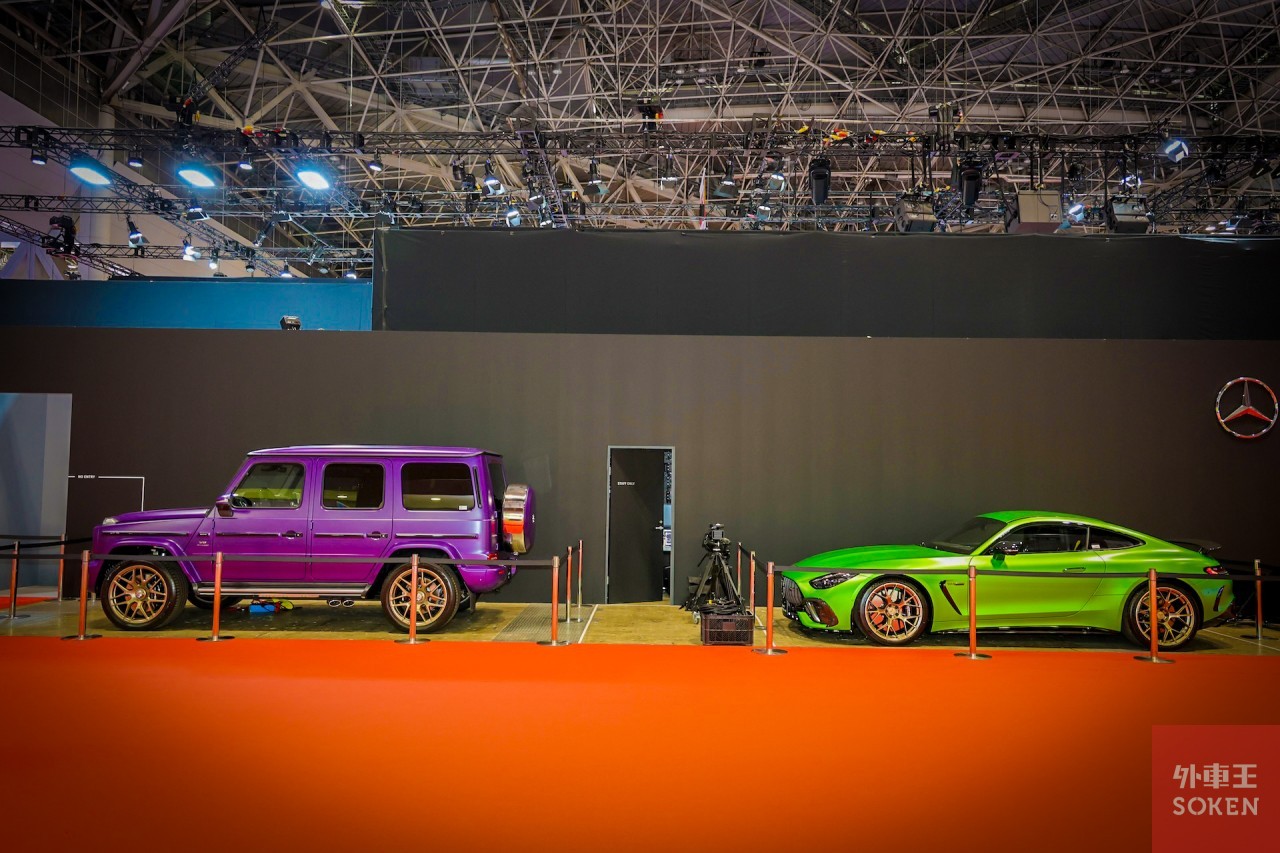 そのほか、ボンネットや幌にマイバッハのロゴがあしらわれたメルセデス・マイバッハの「SLモノグラムシリーズ」も展示され、見た目はシンプルながらも近くで見ると強烈なインパクトを放っていました。