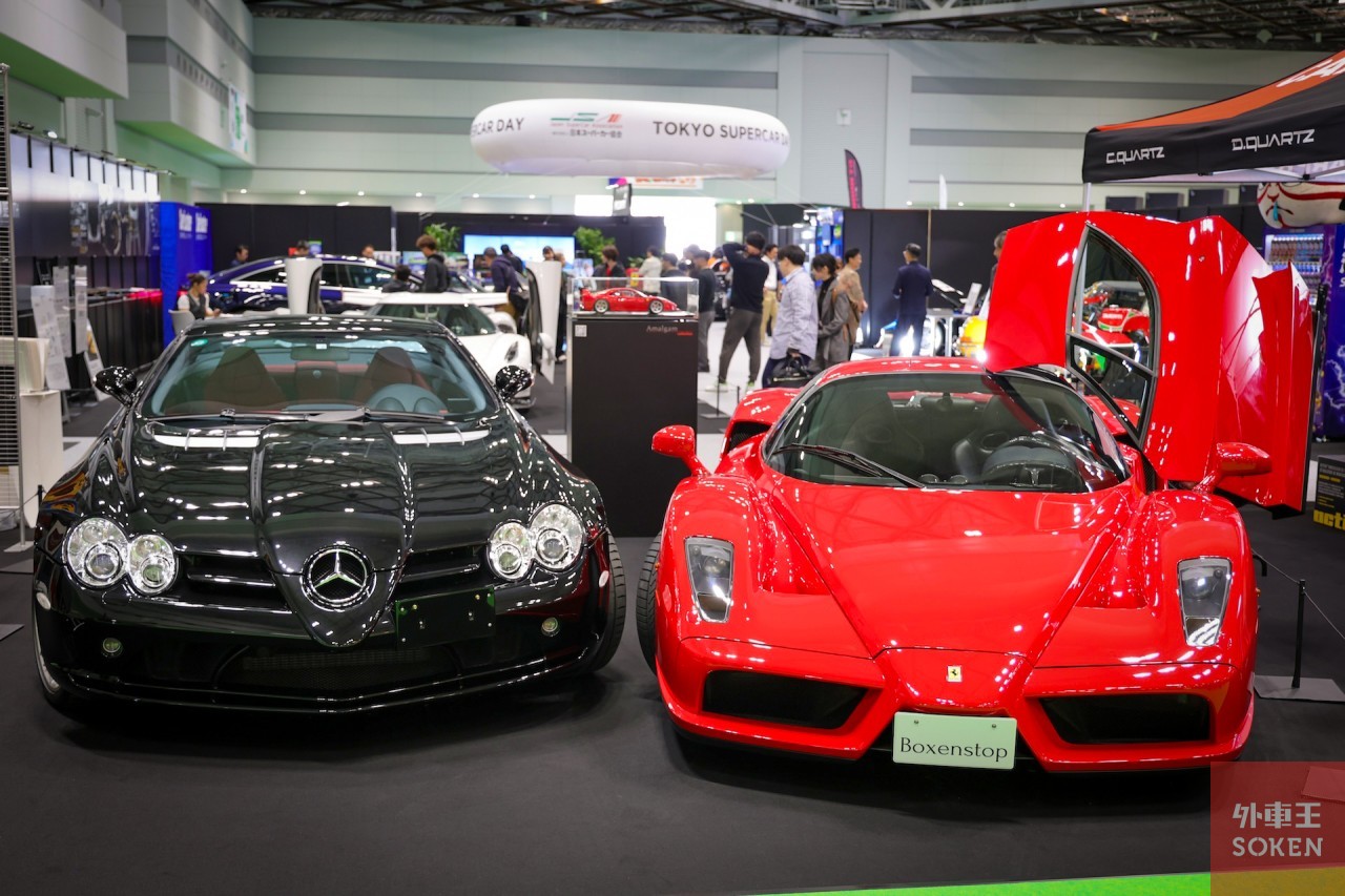 ダイナースクラブには「ダラーラ ストラダーレ」、kleenDEPOTには「エンツォ フェラーリ」「メルセデス・ベンツ SLR マクラーレン」、BEWITHには「ケーニグセグ Jesko」、エアージェイには「フェラーリ SF90 XX ストラダーレ」などなど…普段はめったに見られないハイパーカーやスーパーカーが一堂に会する豪華さです。「TOKYO SUPERCAR DAY 2025 in JMS」の一角はかなり「濃い」ので、じっくり見ているとあっという間に時間が経ってしまう人も少なくないはず。
