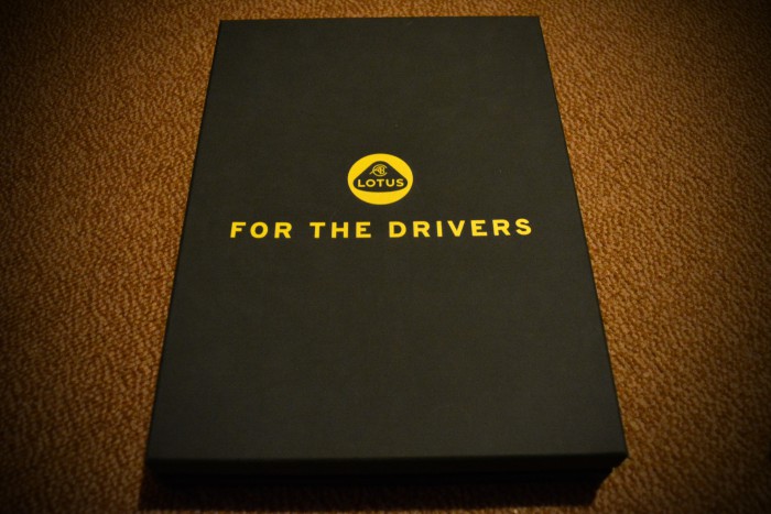 最近ロータスの標語となった“FOR THE DRIVERS”が記されたボックス!