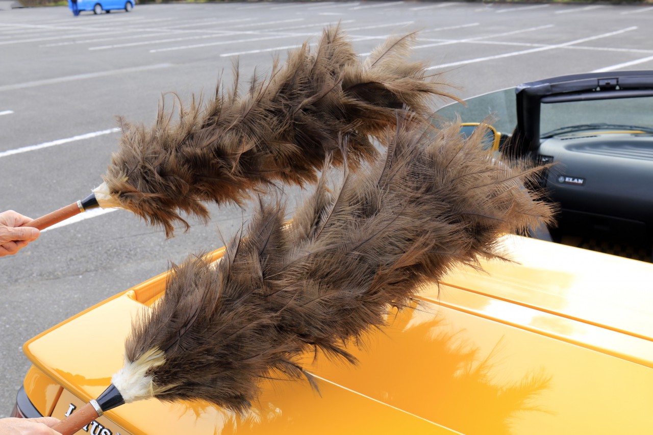 ▲オーストリッチの毛ばたきを愛用する中尾さん。しかも2本というのがポイント。都度、2本の毛ばたきをポンポンと叩き合わせて毛に付着した不純物をはらうのだ