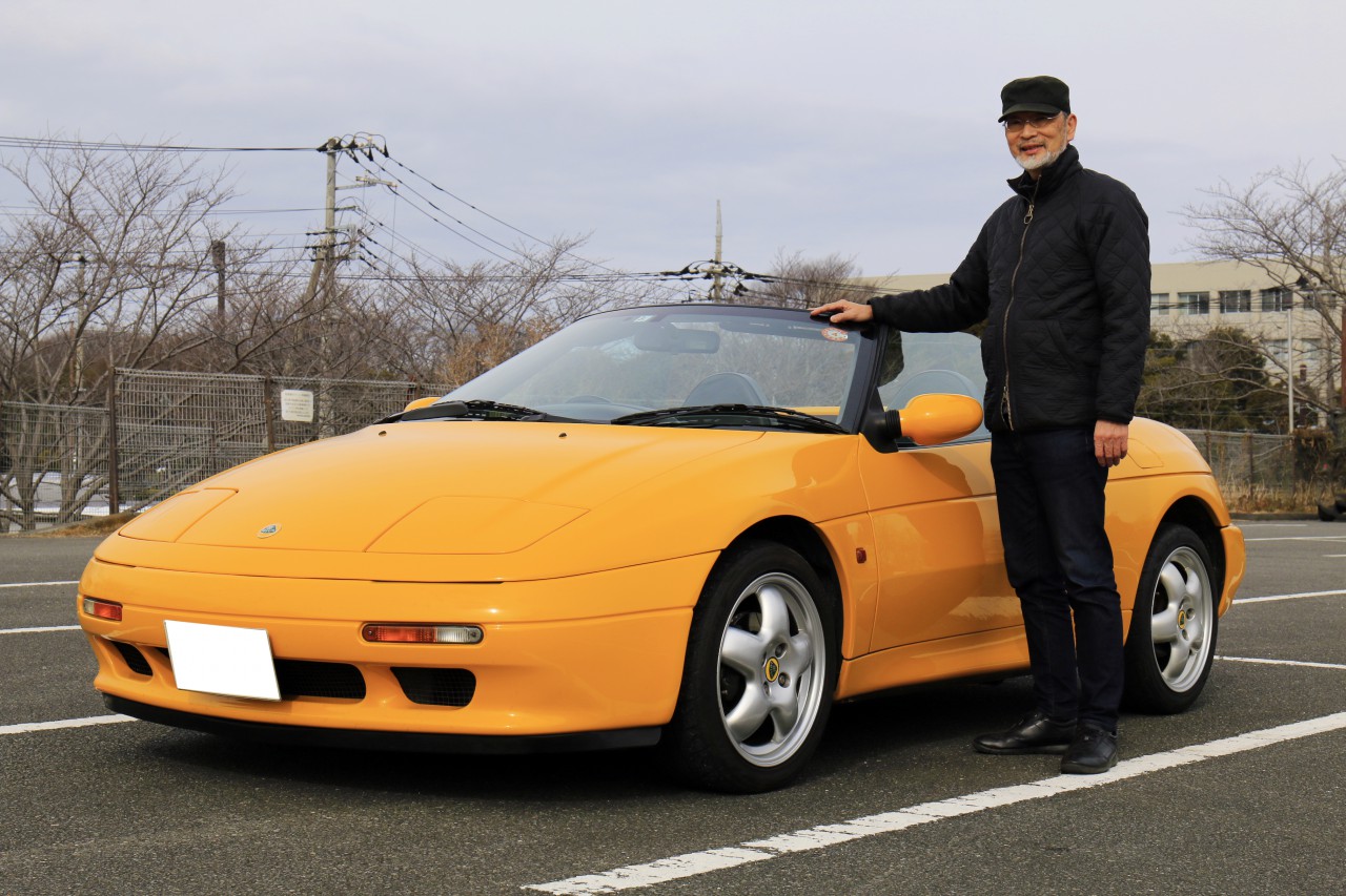 ▲1992年式ロータスエランSEとオーナーの中尾 博さん(59才)