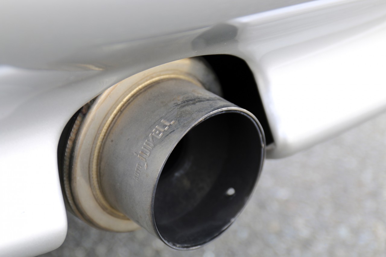 ▲目時さんのM100エランに装着されているマフラーはタイコ部分のみオートジュエル製のものを流用。触媒以降の部分はワンオフで製作したものだという(タイコ部分はマフラーのサウンドを調整するために市販のタイコを10本以上試したなかでベストなものを装着)