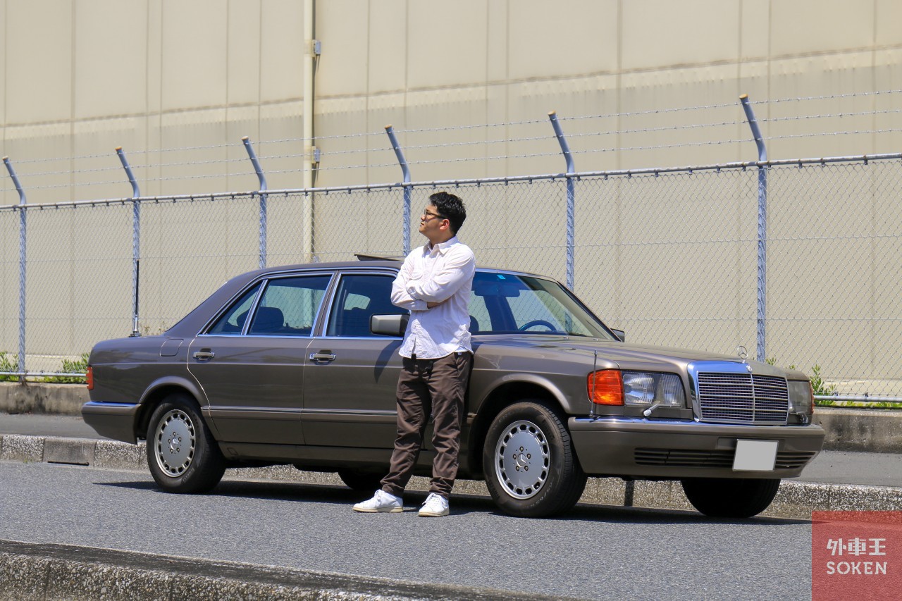 ▲オーナーの丹羽 輝さんと、その愛車である1988年式メルセデス・ベンツ560SEL(V126)