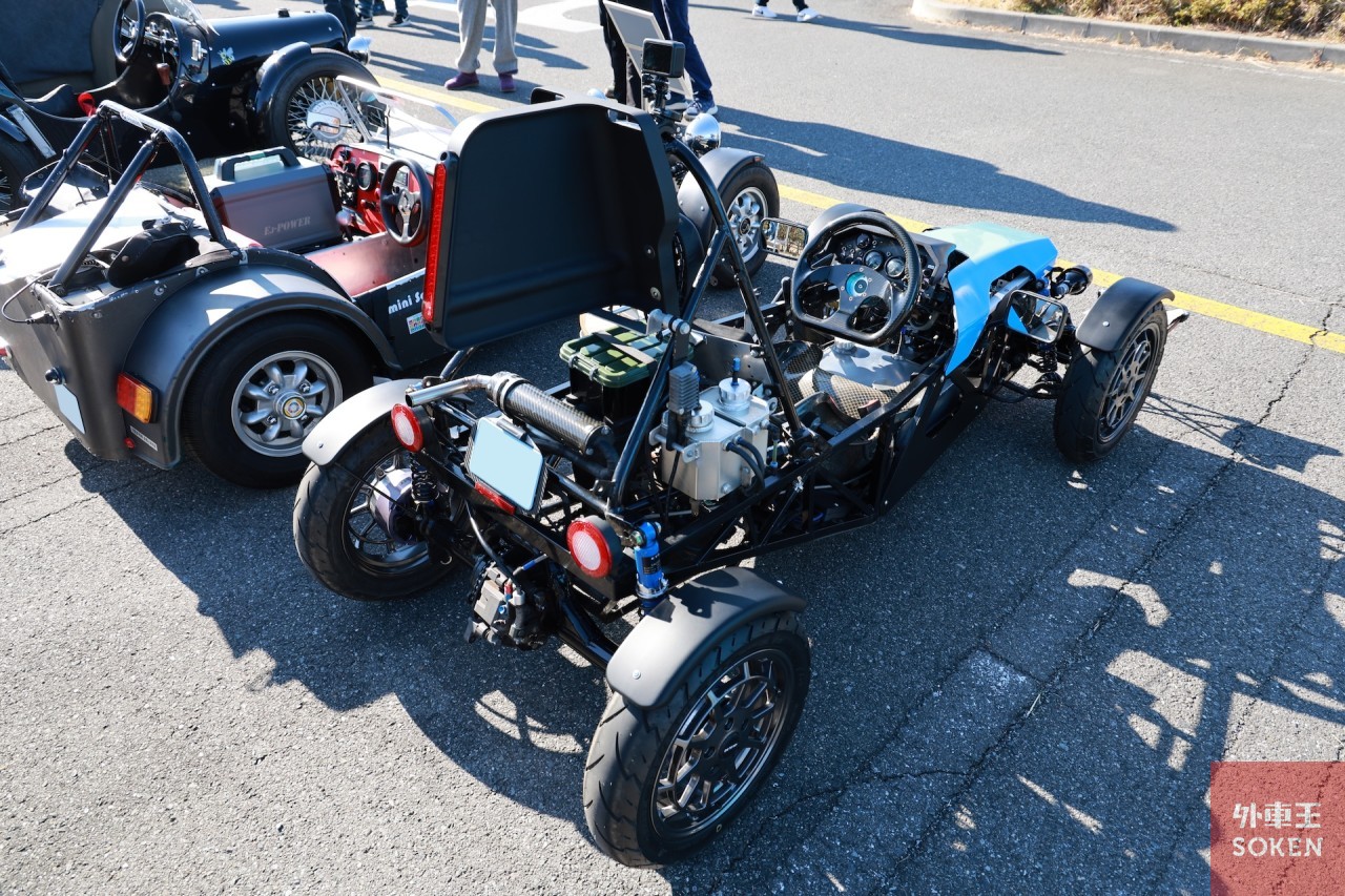 個人的に目を引いたのはこちら。DIYで製作したとは思えない完成度!初見ではコンプリートカーと見間違えたほどです。トナリに並んでいたロータススーパーセブンを模したミニセブンが大きく見えるほどの大きさ。