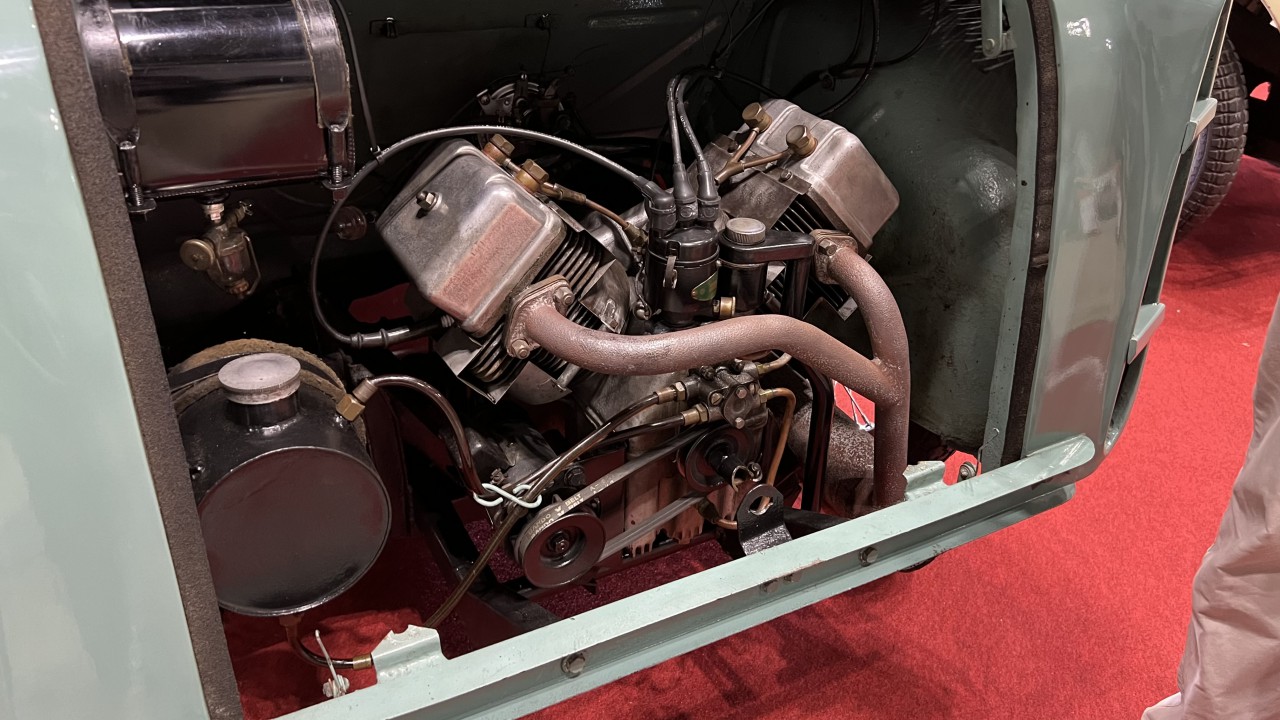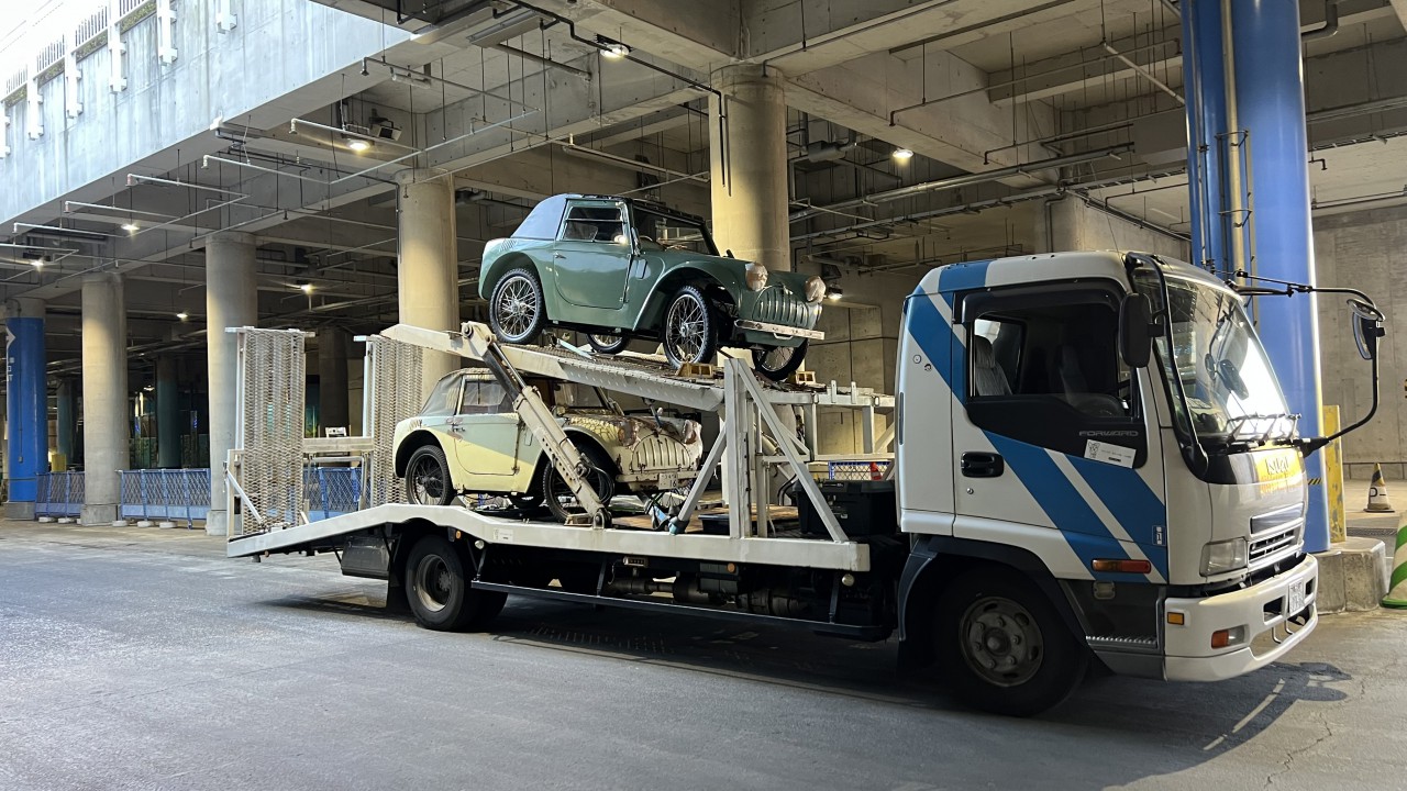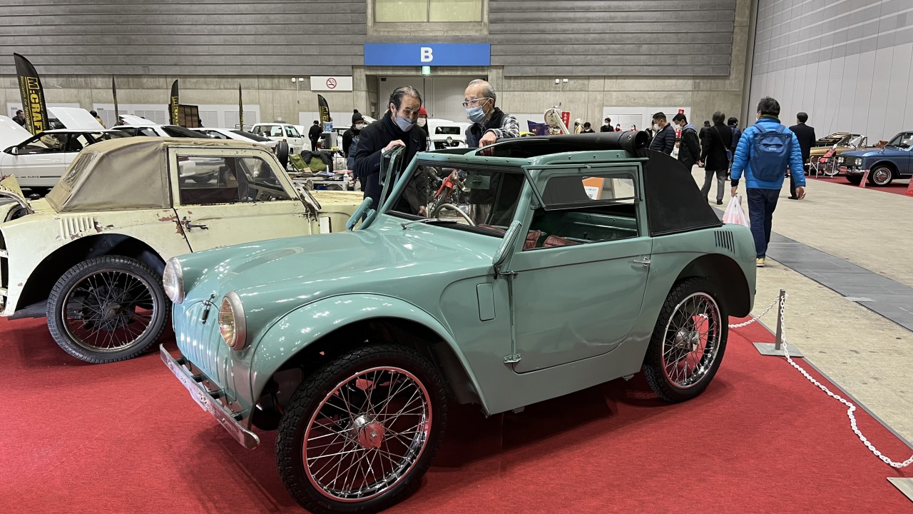 住江製作所が製造販売した極めて黎明期の軽自動車です。日産自動車でダットサンを手がけた富谷龍一氏の設計。軽量でありながら堅牢なボディの作り。このクルマのために専用に用意されたV型2気筒350ccエンジンをリヤの搭載、後輪を駆動。積み込みをする際、実際に触れる機会があり、丁寧な仕事、細部まで凝った作りを垣間見ることができました。