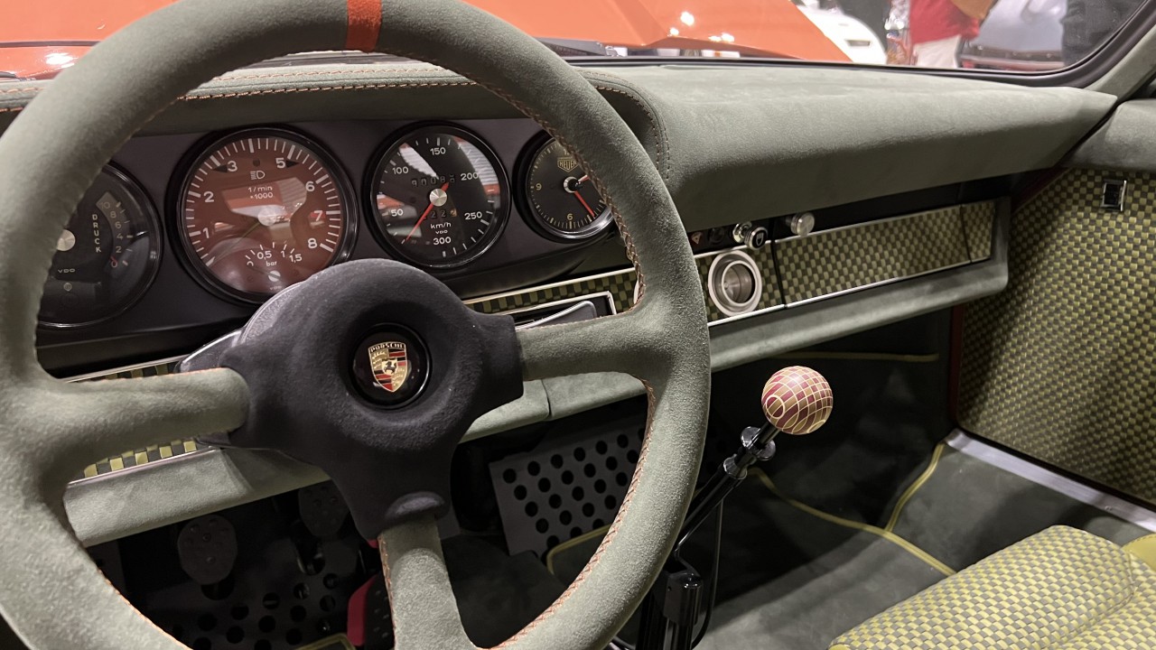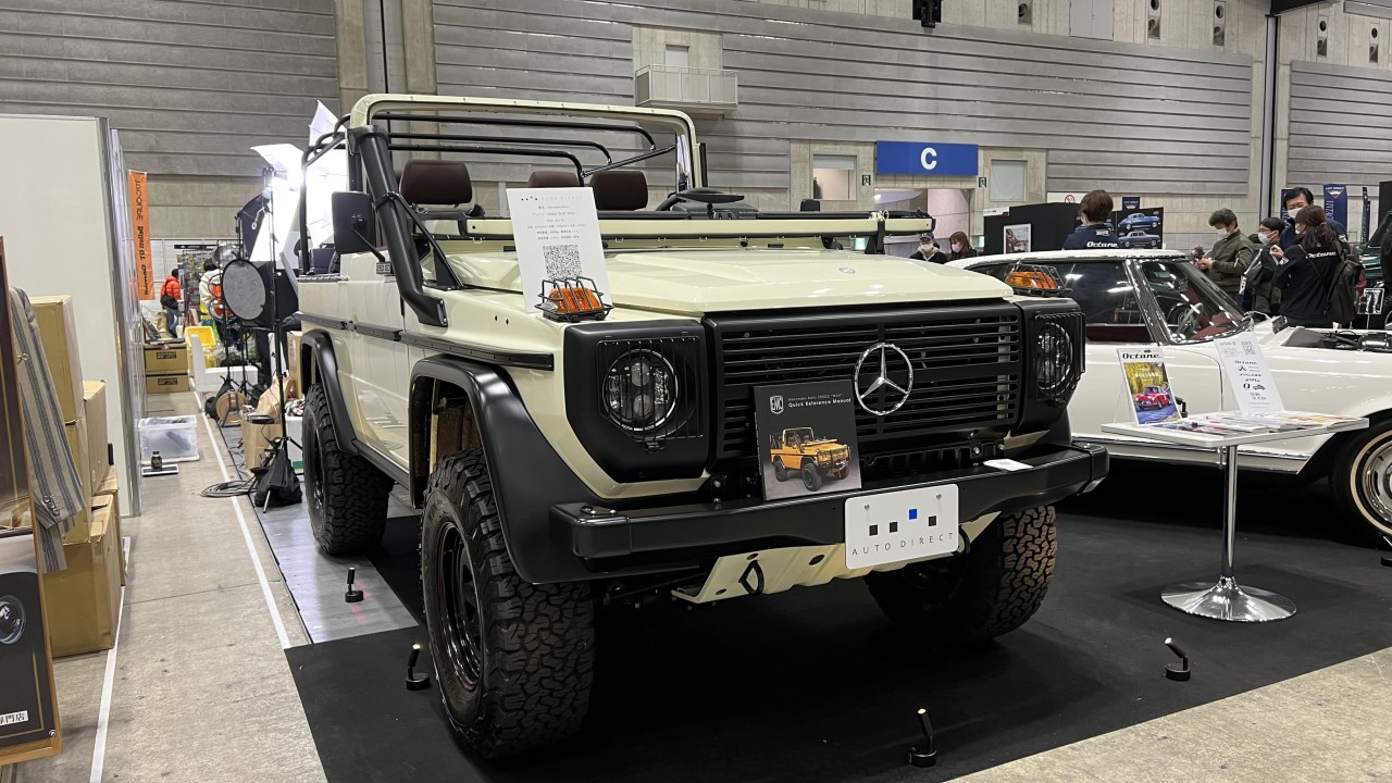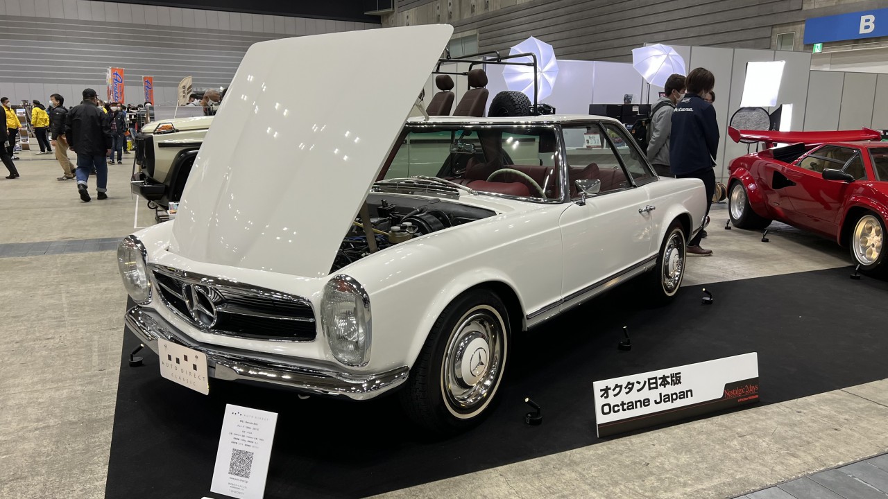 オクタンブースに展示されていたこちらのW113はユニークな一台。普通はハードトップを外すと中には幌が収まっていますが、こちらの一台はその幌がありません。その代わりに少し大きめのリヤシートが設けられています。カリフォルニアロードスターと呼ばれるとのこと。屋根は外せるものの、雨が降る前に帰宅する必要がある。確かにカリフォルニアスタイルですね。