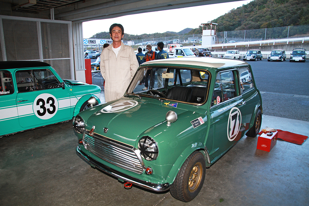 ▲小山英樹選手と愛機オースチンミニクーパー。GW 1500アンダークラスにエントリー