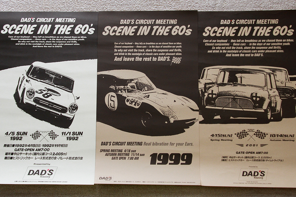 那須選手は、理想のヒストリックカーレースとして愛されている『SCENE IN THE 60’s』の立ち上げ当時、オーガナイザである「DAD’S Racing」の中堅としてイベント固有のデザインと演出を創りながら、参加ドライバーとしてもその草創期を走ってきています。その頃以来、〝ヒストリックカーレースの世界〟と〝ミニレーサーの世界〟両者は、深い関わりをもちながら 現在に至っているそうです。