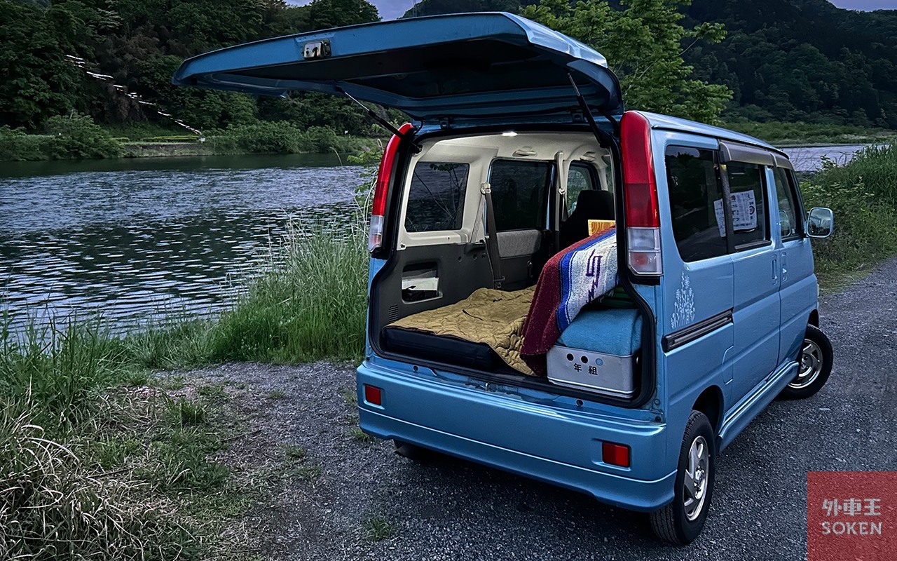 バモスは軽バンが欲しかったのですが新旧ある中でデザインが飛び抜けて優れているので選びました。可愛げがあってストレートでシンプル。もともと新車で出た当時からなかなかよいな、とココロ憎からず思っておりました。ハイルーフのバモスホビオもありましたが初期のデザインコンセプトを逸脱していて残念、そのセンはないと判断しました。低重心で走安性も悪くなく、よく走ります。室内広々、10センチ厚のベットマットを常備。よく寝られます。