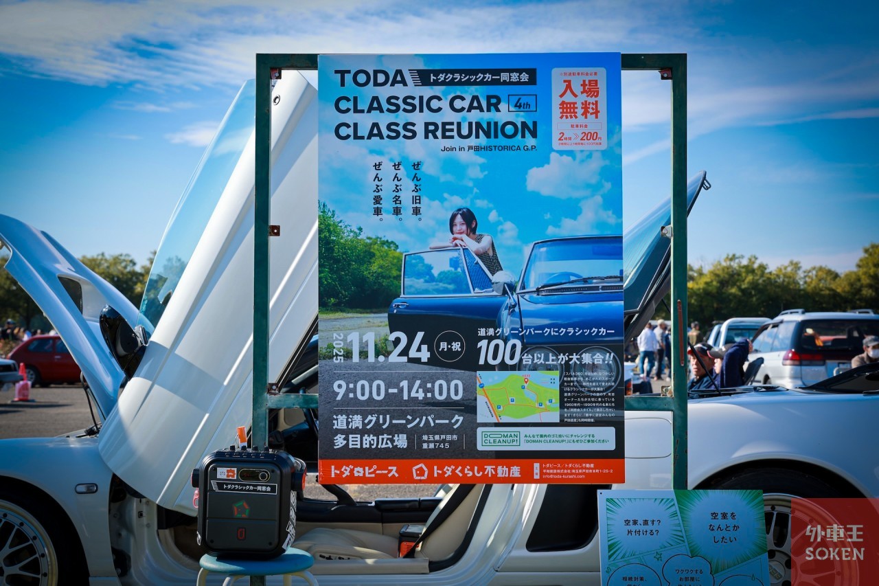 トダクラシックカー同窓会の主催は「トダピース」および「トダくらし不動産」。会場となった道満グリーンパーク多目的広場と同じ、埼玉県戸田市に拠点を構える企業が主体となって企画・運営をしています。