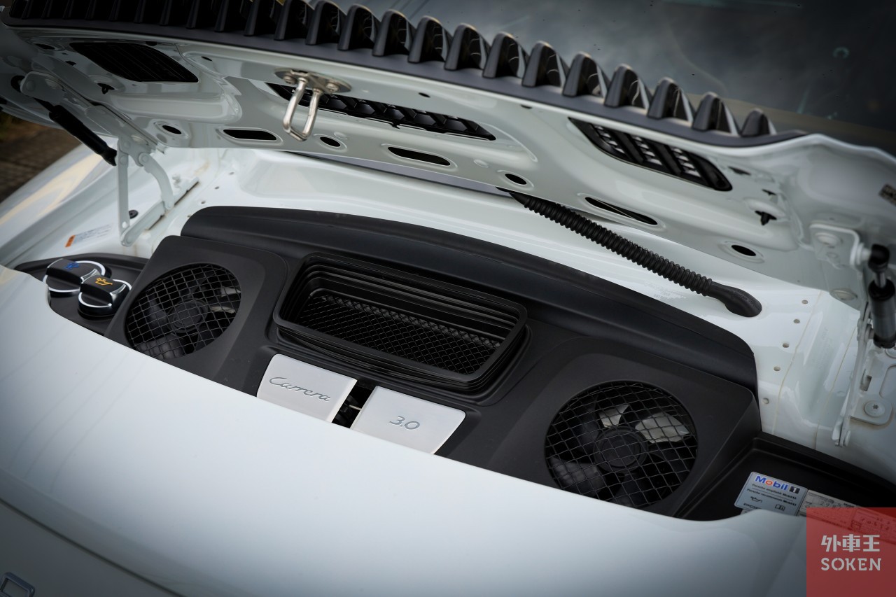 ▲991.2の外観の特徴のひとつである縦格子のエンジンフードが目を引く