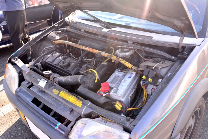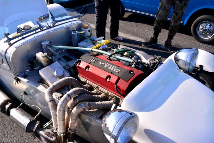 ▲なんと、ホンダ S2000のエンジン・F20Cに換装されています!これは楽しそう!!「乗りますか?」とお誘いいただいた直後、ツワモノ登場が登場したためギャラリーの流れに飲まれてしまいました(笑)。ぜひ次回お願いしますねっ!