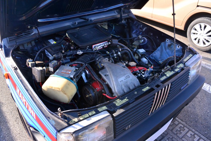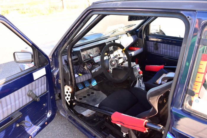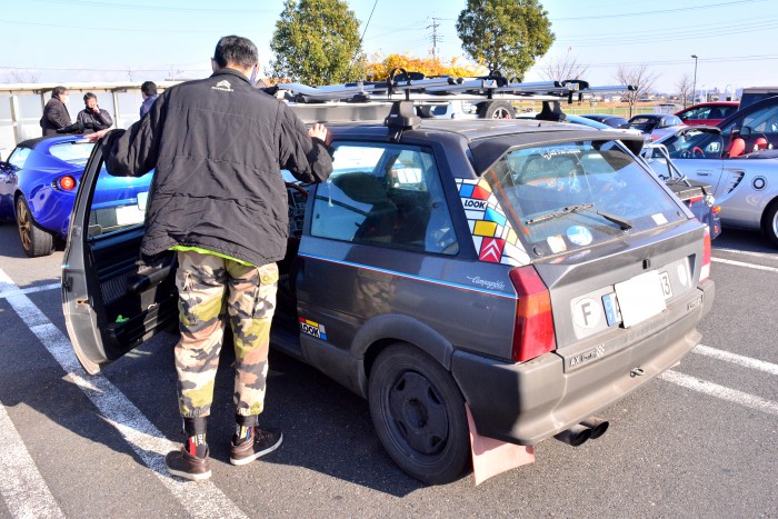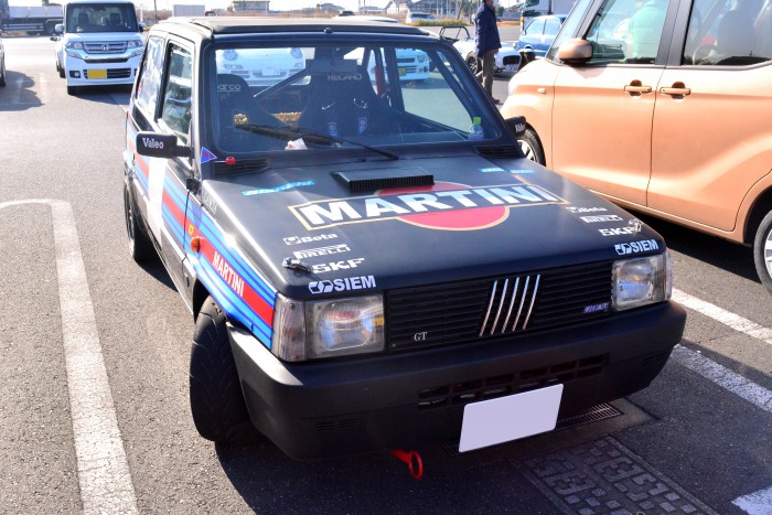 元カップカーのフィアット パンダ。アウトビアンキ Y10の1300ccエンジンを搭載。同乗体験もさせていただいたのですが、さすがはレース車両なだけありピーキーな挙動を見せるため、乗り手を選びそうな1台です。LSDも効いていてコーナーでもガンガン踏める!