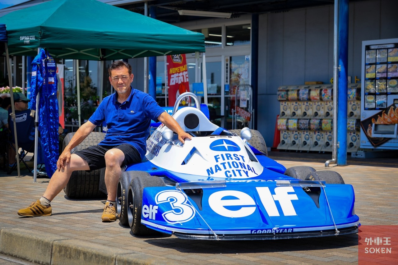 サンブレフェスタに欠かせないクルマといえば、「カスタムビルド&レストア WATAHIKI」代表・綿引雄司さんが手作りで制作した「6輪F1タイレルP34」でしょう。ファンにとっては、普段はYouTubeで観ているマシンそのものをでチェックできるだけでなく、制作者である綿引さんと話せる貴重な場でもあります(さまざまな制作秘話が聞けるのもサンブレフェスタならでは!)。この日もファンの方たちが会場を訪れ、綿引さんと談笑する光景を目にしました。