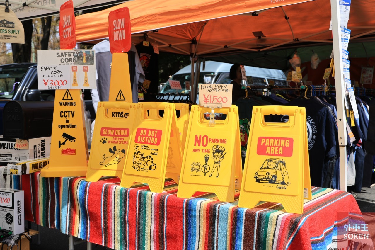 スーパーアメリカンガレージ朝霞の森のもうひとつの楽しみといえば、スワップミート&飲食&ピンストライパーブース。普段ならスマホ片手にネット通販でチェックしているようなアイテムがずらりと並べられるなど、アメ車オーナーはもちろん、たまたま散歩で朝霞の森に立ち寄った人でも(クルマにそれほど興味がない人でも)楽しめる空間です。仕事で来ている立場としては、さまざまな誘惑を振り切って取材を続けました・・・。