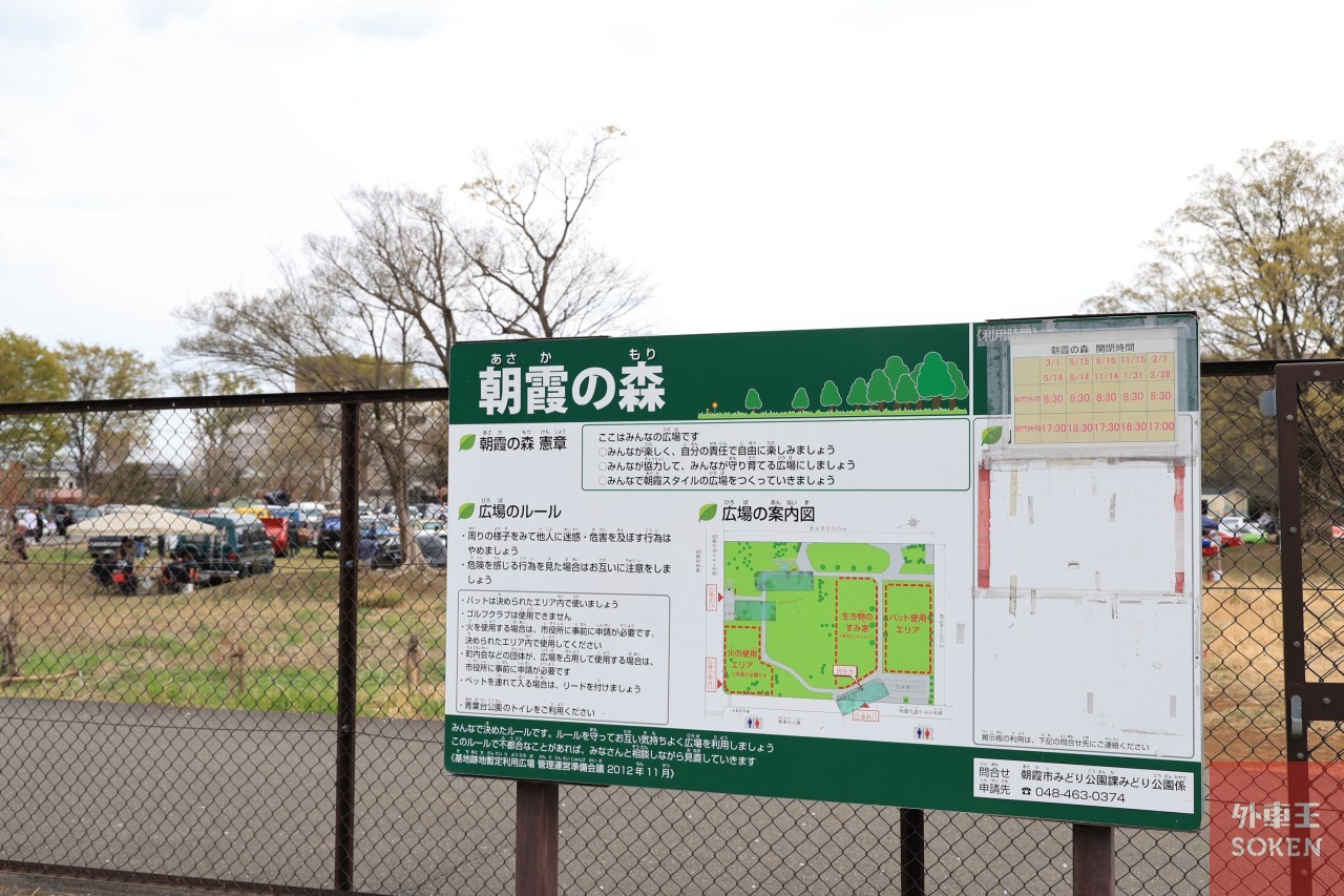 会場となっている「朝霞の森」は、東武東上線朝霞駅南口下車徒歩約10分のところにあり、かつては米軍基地だった場所なのです。広さは約3ヘクタールと、東京ドームの半分強。これではピンとこないと思うので、約9,000坪というと少しは広さをイメージできるかもしれません。敷地内は最大で約400台分の駐車が可能であるため、大規模なクルマのイベントを行うこともできます。