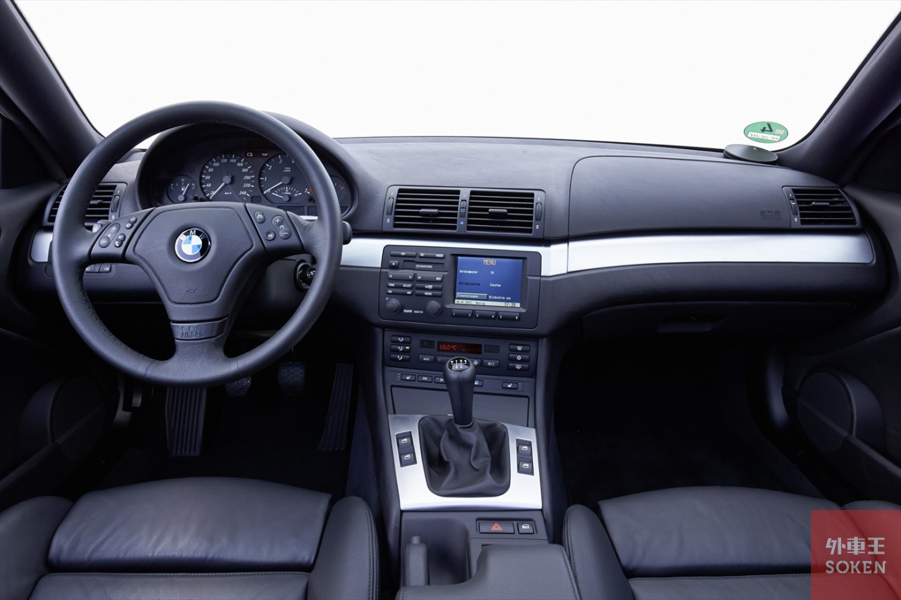 E46のデビューは、1998年。おおげさにいえば、20世紀のクルマです。スタイリングも、ボディをぐるりと一周する黒いモールや、明確にヘッドライトとわかれるオレンジ色のウインカーなど、現代のクルマにはなくなった1990年代までのエッセンスが散りばめられています。カーナビ装着を前提としない低く構えたインストルメントパネルも、もはやクラシックの域でしょう。