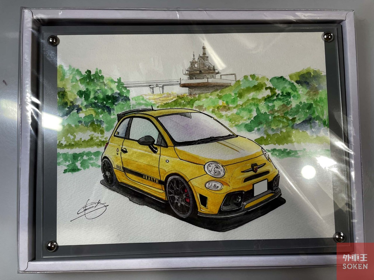 絵描き屋がゲストで呼ばれているというお話をいたしましたが、毎年こちらで希望者(数量限定)に愛車イラストを描くということ、ジャンケン大会の勝者にプレゼントするオーナーの車両のイラストを描くということをしている関係で呼ばれております。
