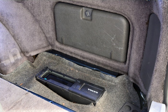 ▲懐かしのCDたくさん入るやつ!!(正しくはCDチェンジャーと言います笑)。家庭用オーディオでも昔流行った世代の方、多いのでは?クルマ用は、こういう風にトランクにあることがほとんどでした。その上に見えるのは純正工具セットのケース