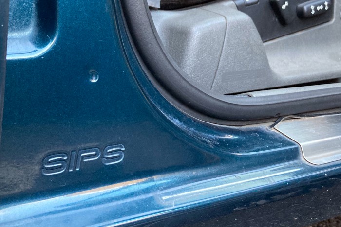 ▲ボルボ特有の側面衝撃吸収システム、SIPS(Side Impact Protection Systemの略)のロゴ