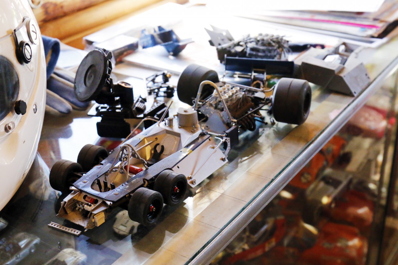今回、ついにお披露目となったタイレルP34、これは序章、スタートにすぎません。ステアリングとアームが連動して人力で動かせる状況にはありますが、自走はこれから。綿引氏ご自身も今後の動きとしては「先にシャーシを塗装して、その後、動かせる状態に組み直すか思案中」とのこと。マニュアルがあるわけでもなく、すべてが手探りの状態。どこまで造り込むのか、どの段階が完成なのか?それを知る(決める)のは綿引氏ご本人ただひとりです。