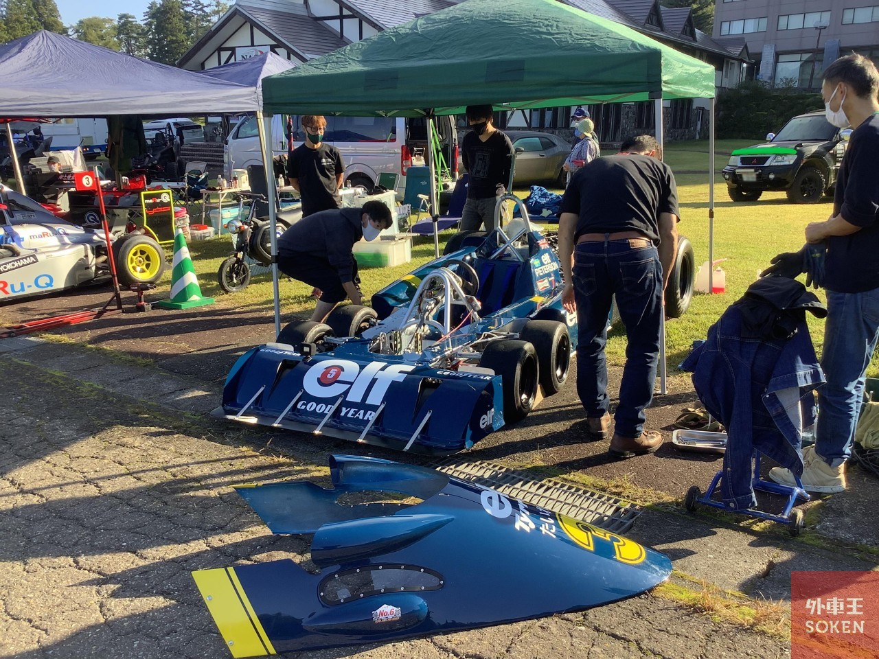 このイベントに隼のエンジンを積んだフォーミュラーカーでエントリーしていた(有)上条自動車商会のスタッフの方たちが、点火コイルの予備部品を譲ってくださったり、タイレルP34のトラブルシューティングのサポートを名乗り出てくれたのです。