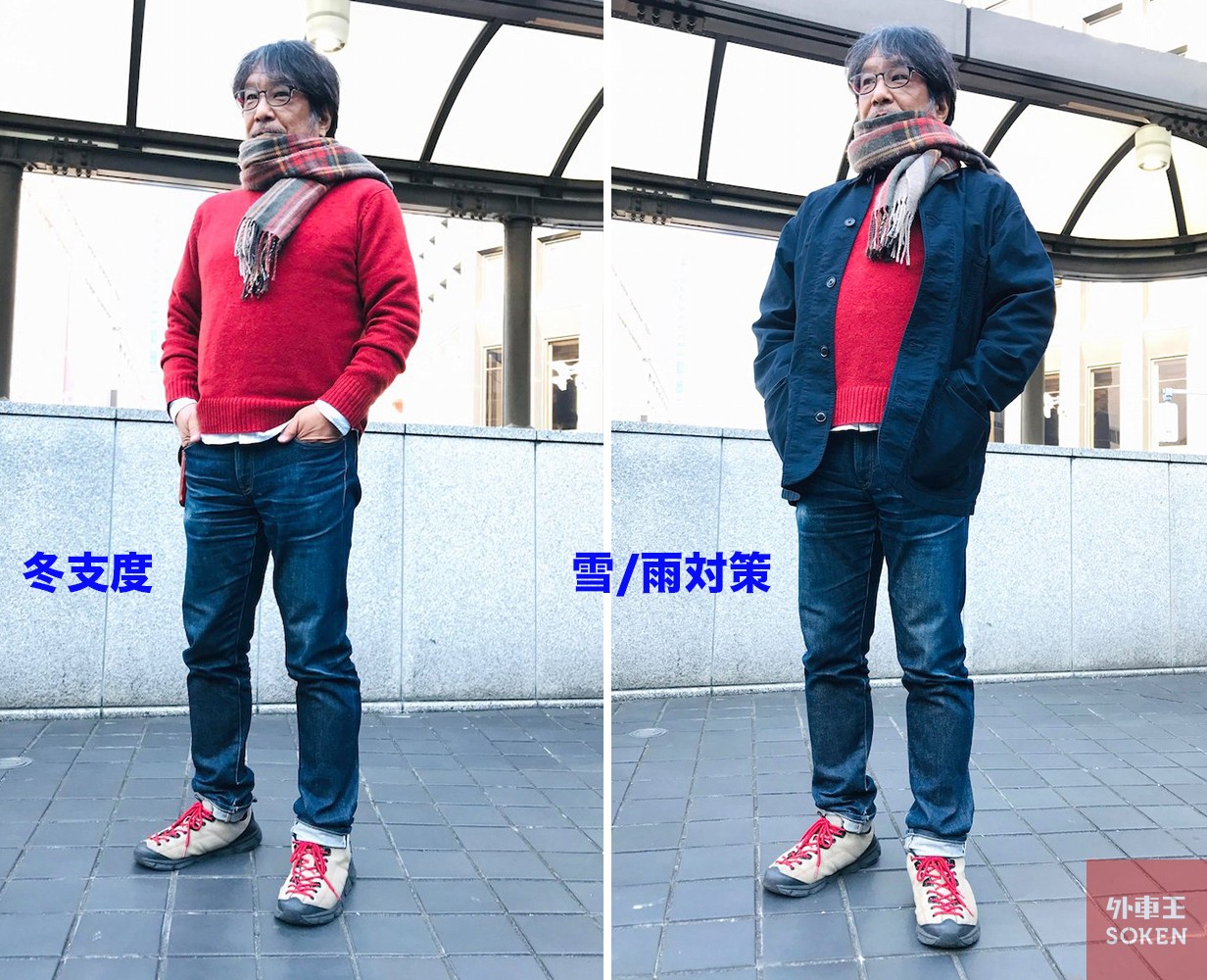 では、その装備をご紹介。クルマ運転するスタイルというよりは、まあ、ほとんど冬の外出着(笑)。「えりまき=マフラー」は必須。帽子は速度上げると飛んじゃうかもなので、オプション扱い。